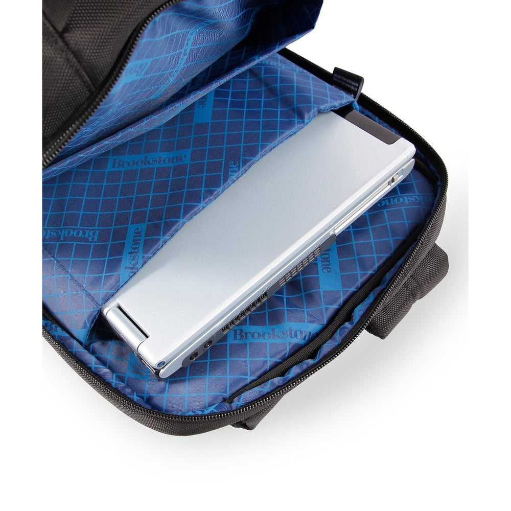 Head off to work or school with your laptop and other must-haves packed safely and stylishly inside this durable Ezra backpack by Brookstone. The backpack features a spacious main compartment, RFID pocket, luggage trolley back sleeve for easy transportation, laptop compartment, tablet pocket, multiple zippered pockets for accessories, bartak sewing at all stress points for long lasting durability, deluxe interior organizer, multiple side pockets and padded air mesh back panel.