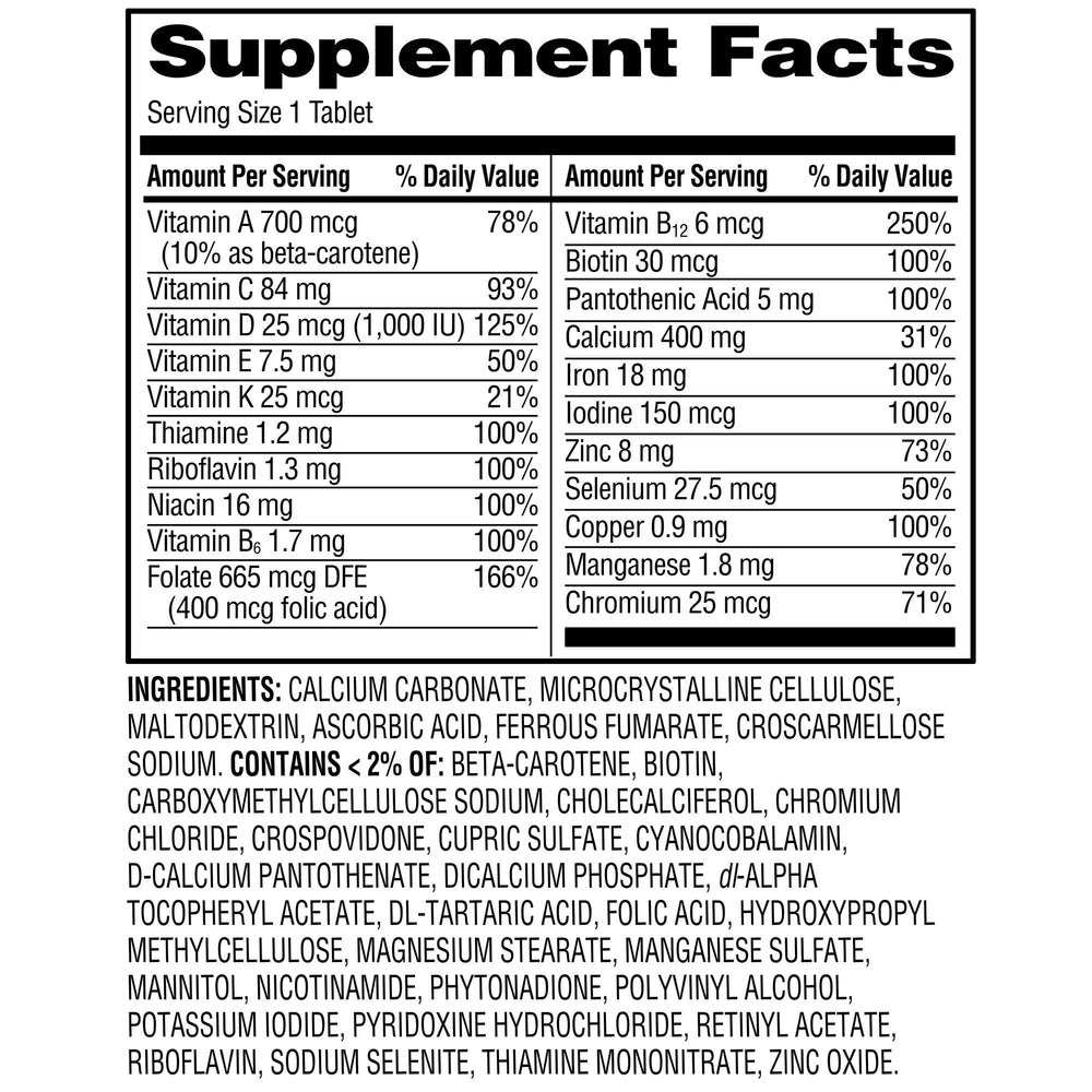 Our Equate One Daily Women's Tablets is a balanced multivitamin formulated to support women's health.* When you're always on the go, it can be hard to ensure your daily nutritional needs are met. This formula contains a wide spectrum of key vitamins and nutrients to help support your heart, bone, and immune health.* You can rest assured that Equate One Daily Women's Tablets Multivitamin/Multimineral Supplement is produced with strict quality guidelines and is backed by our quality guarantee. Simply take one tablet a day with food to help supplement key daily nutrients.