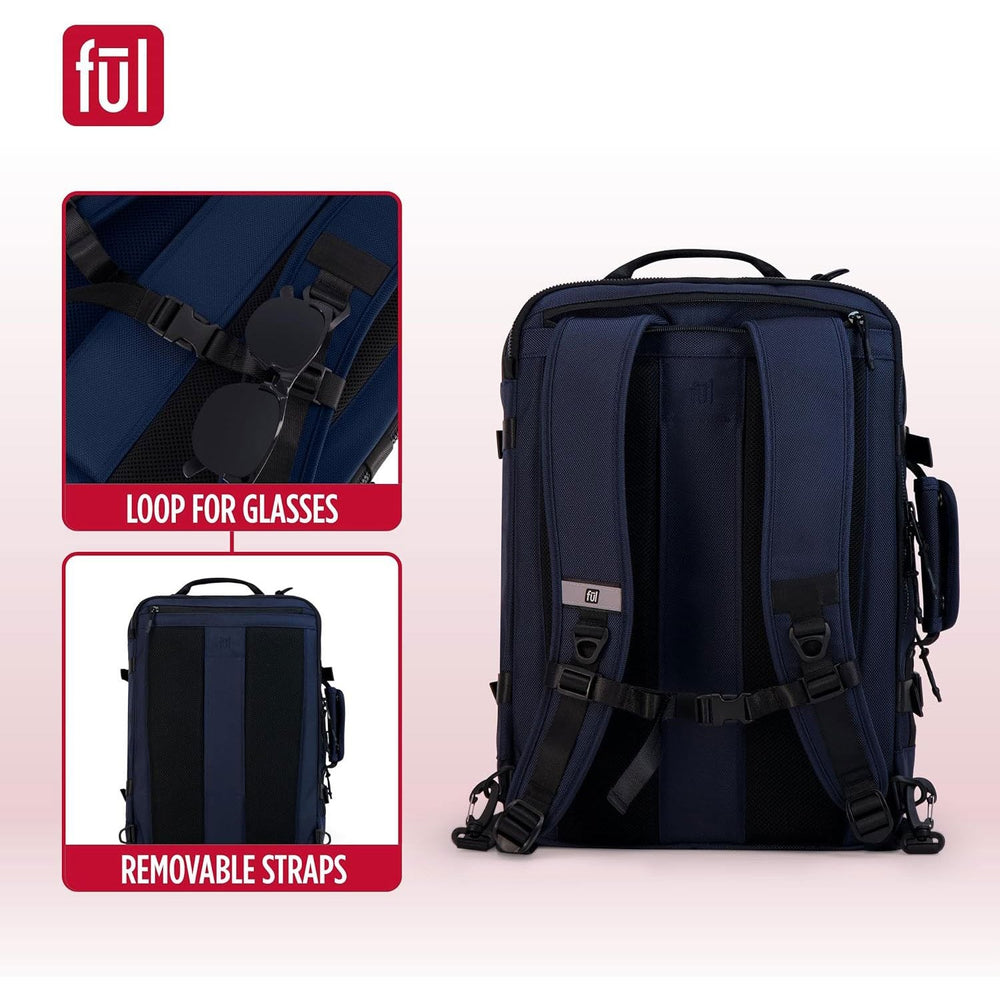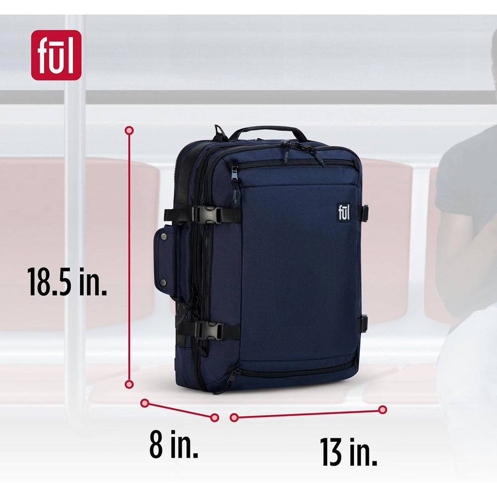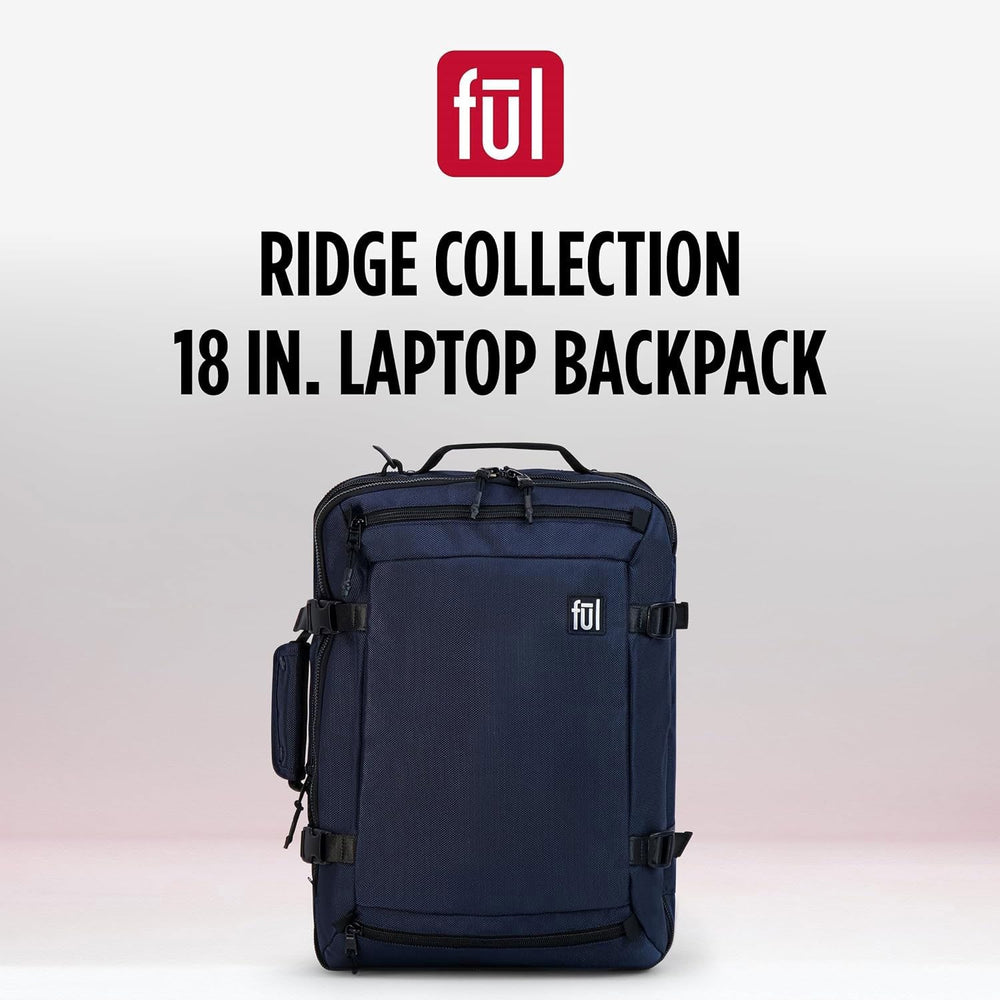 Keep all of your accessories securely packed and easily accessible while on the go with the Ridge Collection Laptop Traveling Backpack. This commuter backpack features two seperate sections which can be packed like luggage or zipped together to create one large backpack compartment. This backpack for laptop computers also features a ring for string attachments or glasses, and front, top, and bottom zip pockets for storing small accessories and essentials. This office backpack also features a quick access cell phone pocket, a right side pocket for storing a water bottle or umbrella, and a left side zip pocket to store your phone and cord pass-through for phone charging. This bagpack features ergonomic, removable and adjustable shoulder harness straps which can be adjusted from 22 to 38 inches drop, and can be zipped away for checking as luggage. This professional backpack features a sternum strap to help reduce fatigue, a rear strap for stacking the adult backpack on your suitcase, a loop for holding glasses on shoulder straps, snap hook for securing items to the bag, and a top carry handle with a 1.5 inch drop. Constructed with strong heavy duty 1680D ballistic weave fabric for long-lasting reliability, our back packs also feature soft polyester interior to protect your stored personal items. This business backpack measures 18.5 H x 13 W x 8 D in inches.