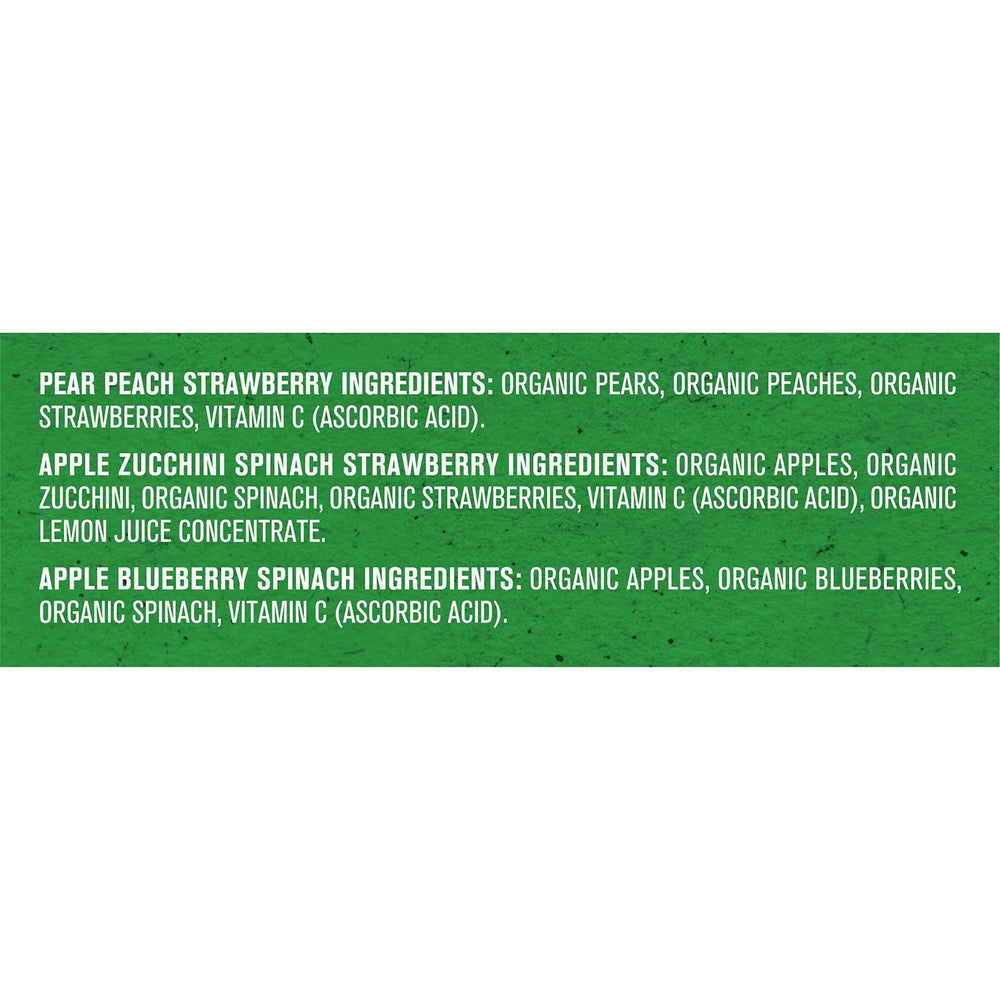 Each pouch contains 3.5 oz of USDA Certified Organic, Non-GMO Project Verified baby food.