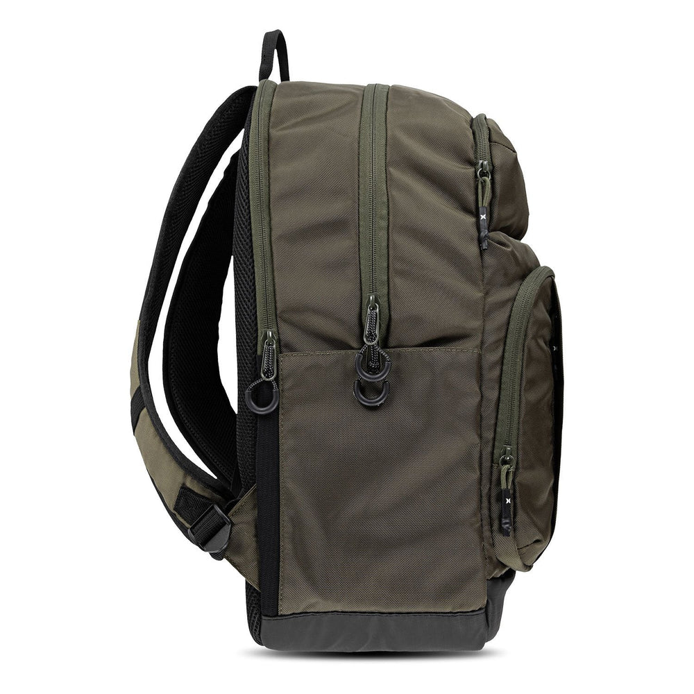 This reliable backpack by Hurley is a must for your everyday hauls. It is made of durable woven polyester with a polyurethane coating to help it keep dry in light rains. The spacious zippered main compartment houses a padded laptop sleeve, there is a smaller zippered compartment on the front that has a mesh zip pocket to secure smaller items you don't want lost in the shuffle of the main compartment. There are 2 large zip pockets on the front that provide access to items you want quick and easy access to and the padded back and adjustable straps provide comfortable wear.¬â€