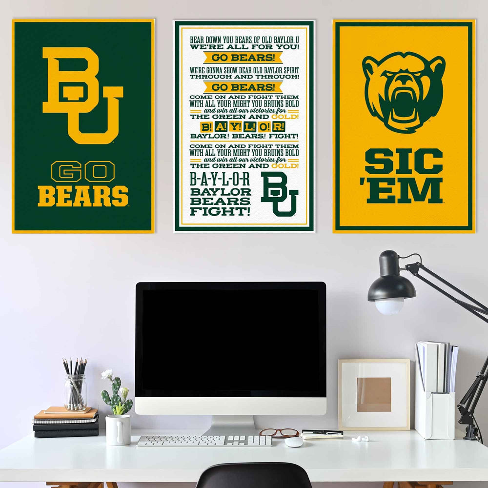 Celebrate your school spirit with this bold 3-piece Collegiate Adhesive Canvas Set. Each oversized design showcases iconic logos, chants, or graphics that bring your favorite team’s pride to life in vivid detail. With 63 NCAA Schools offered, this collection lets fans represent their alma mater or favorite team with standout style. Made from premium textured canvas, these peel-and-stick prints apply smoothly and remove cleanly—no nails or tools required.