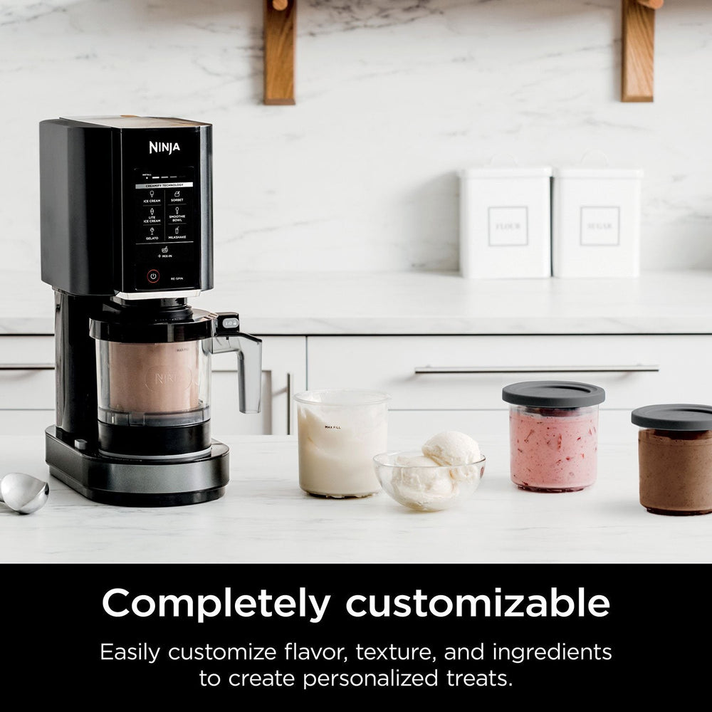 Creating your favorite frozen treats is simple with the Ninja CREAMi. Prep your base, freeze overnight, process, and enjoy! Use the Re-spin function for an even softer and creamier texture. The containers, lids, and paddle are top-rack dishwasher safe for easy cleanup. Note: This unit is compatible only with Ninja CREAMi NC299 and NC300 pint accessories.