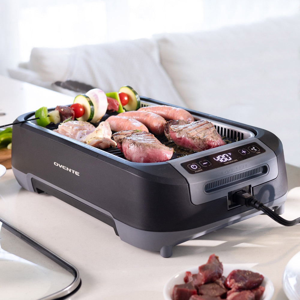 Create unforgettable moments around the table with the OVENTE Electric Smokeless Grill - a perfect blend of convenience, versatility, and modern style. Designed for indoor use, it lets you savor grilled favorites like pancakes, bacon, steaks, or burgers without the smoke or mess. With fast, even heating and easy cleanup, it brings the joy of grilling right to your kitchen. Enjoy flavorful meals and healthier cooking in every season, all from the comfort of home.