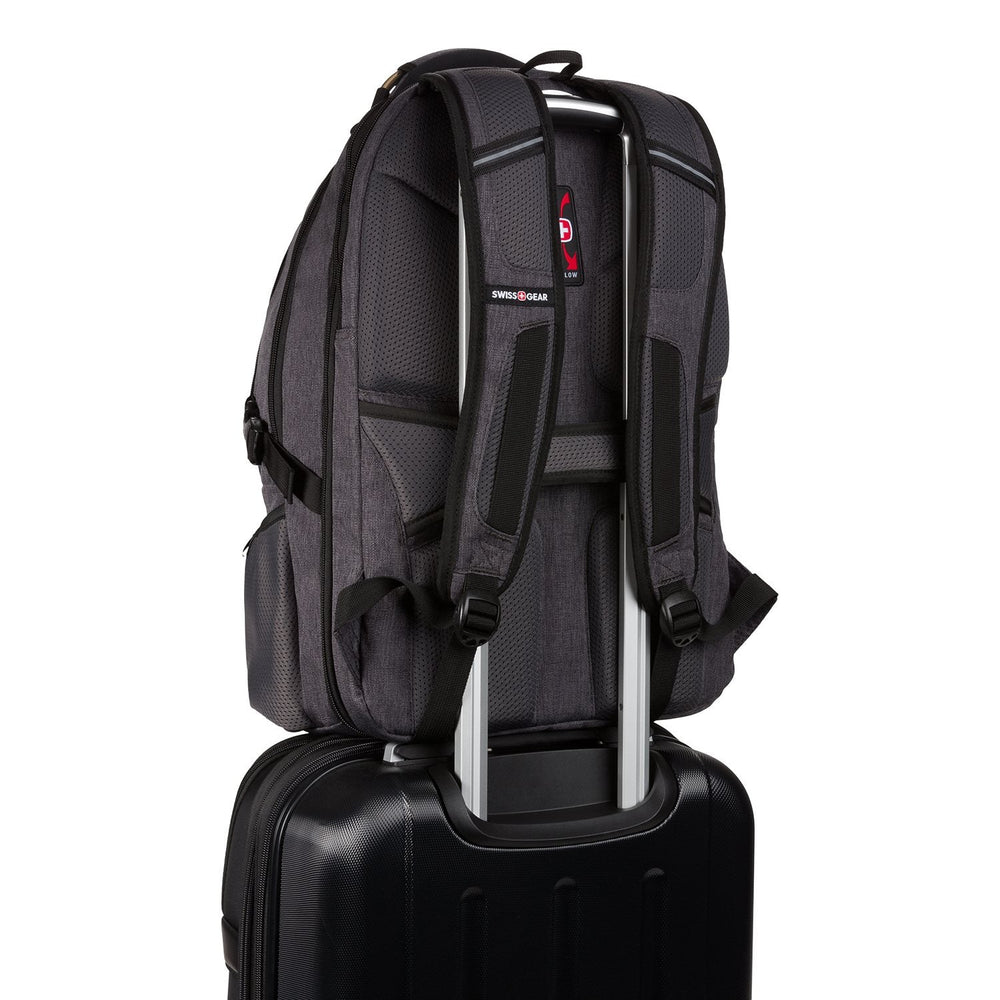 Additional features include a crush-resistant glasses compartment, multiple padded tablet pockets, side water bottle pockets, and side compression straps to help keep your contents in place. Toss in an add-a-bag panel allowing you to slide the backpack over most retractable handles of wheeled luggage, as well as fully padded shoulder straps and an Airflow back panel for hours of wearing comfort.