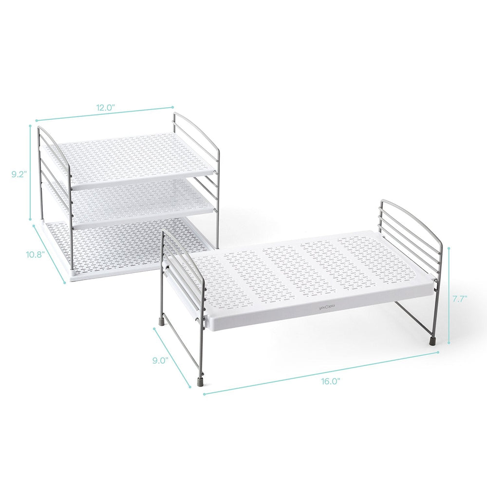 The UpSpace Adjustable Shelf is the ultimate solution for organizing small and tall items alike. With adjustable clearance heights, it accommodates everything from coffee mugs to pint glasses, ensuring a perfect fit for your cabinet essentials. Whether under the kitchen sink for cleaning supplies or in the bathroom for soaps and bottles, this versatile shelf adapts to your needs effortlessly.